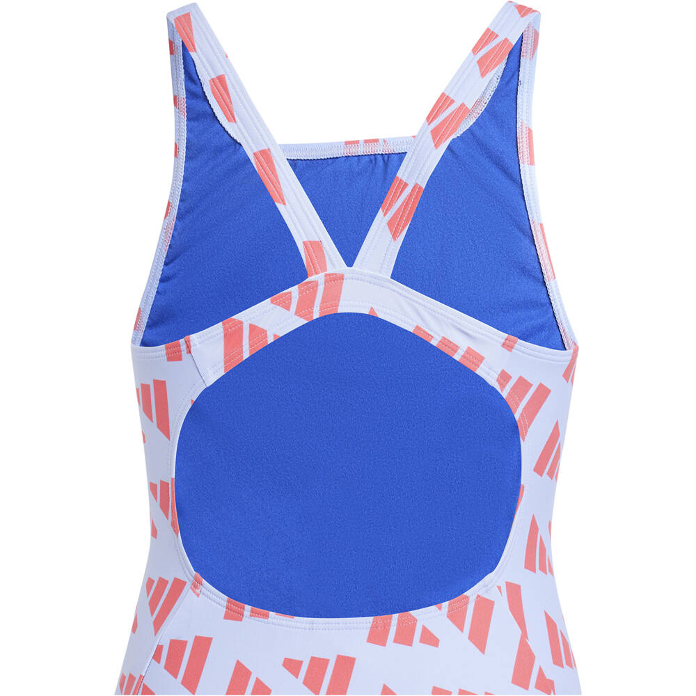 - Haz que tu hija disfrute de cada brazada con este bañador de adidas. Diseñado con una espalda en V que permite una mayor libertad de movimiento, este bañador es ideal para sus entrenamientos o días de diversión en la piscina. Su colorido estampado no solo es llamativo, sino que aporta un toque moderno y divertido. Fabricado con un 70 % de materiales reciclados, este bañador combina estilo y sostenibilidad. Además, el suave tejido Infinitex de secado rápido es resistente al cloro, lo que lo hace perfecto para un uso prolongado sin perder su forma. El forro completo garantiza comodidad y seguridad en todo momento. Ya sea para competir o disfrutar del agua, este bañador será su mejor aliado. ¡Prepárate para verla nadar con confianza y energía!