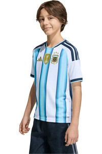 - Camiseta fútbol oficial junior adidas 1ª EQUIPACIÓN ESPAÑA MUNDIAL 2026 Home (adolescentes) para la Copa Mundial de la FIFA 26™ que se celebra en México, Canadá y Estados Unidos. ¡La camiseta con la que Argentina quiere volver a ser campeona del mundo ya está aquí! adidas ha creado un diseño súper especial para el gran torneo, inspirado en los tres Mundiales que ganó la selección y en su increíble historia. Las clásicas franjas azules en degradado harán que sientan toda la magia de la Albiceleste. Además, tiene detalles geniales como el escudo bordado, los ribetes en las mangas y el año en que nació la AFA en la parte de atrás. Está hecha con tejido transpirable CLIMACOOL de adidas para que estén cómodo y secos mientras juegan o animas a su equipo. ¡Ponte la camiseta de Argentina y vive la emoción de los campeones!