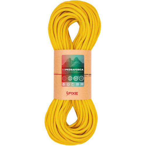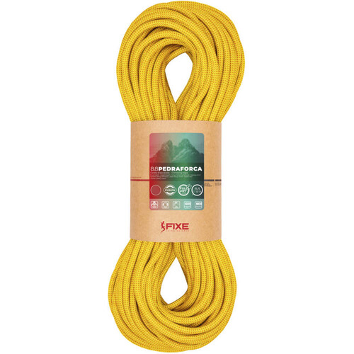 - La cuerda Fixe PEDRAFORCA 8.8 mm es perfecta para escaladores que buscan versatilidad, ligereza y máxima seguridad. Con triple homologación (simple, doble y gemela), es perfecta para escalada deportiva, clásica, alpina y grandes paredes. Su tratamiento Full Dry la hace completamente impermeable, protegiéndola del agua, el polvo, el aceite y la abrasión.