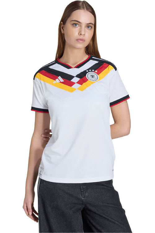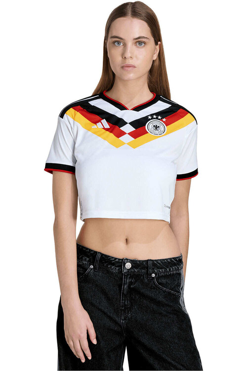 - Camisetas de fútbol adidas. La talla M de una camiseta adidas corresponde a un pecho de 92-102 centímetros, una cintura de 83-90 centímetros, una cadera de entre 94 y 101 centímetros y tiene un tiro de 85 centímetros.