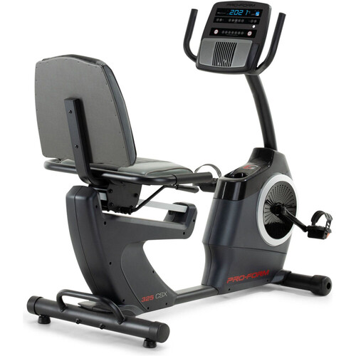 - Equipada con un sistema de resistencia magnética motorizada de 22 niveles y un volante de inercia de 7 kg, la bicicleta estática reclinable Proform 325 CSX es perfecta para realizar sesiones suaves y silenciosas. Indicada para personas en rehabilitación, con sobrepeso o de edad avanzada, ya que incorpora un asiento con respaldo acolchado ajustable, para obtener una postura indicada, durante el ejercicio. Plegable para que maximices el espacio y crees un gimnasio en casa en pequeños espacios.